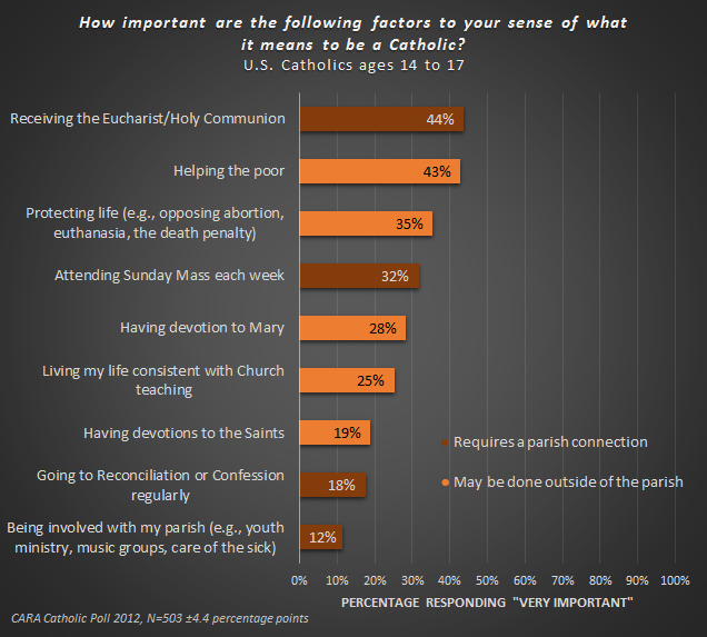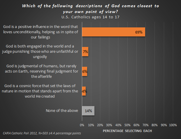 The Center for Applied Research in the Apostolate (CARA) at Georgetown University recently published an interesting study on attitudes of Catholic teenagers. You can read the full report here but set forth below are some of my take-aways: