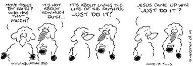 1. Thought-provoking – thank you. I smiled at the cartoon strip “Just Do It” – which is exactly what I called my own reflection on this Gospel reading. Think I may have to steal it …
