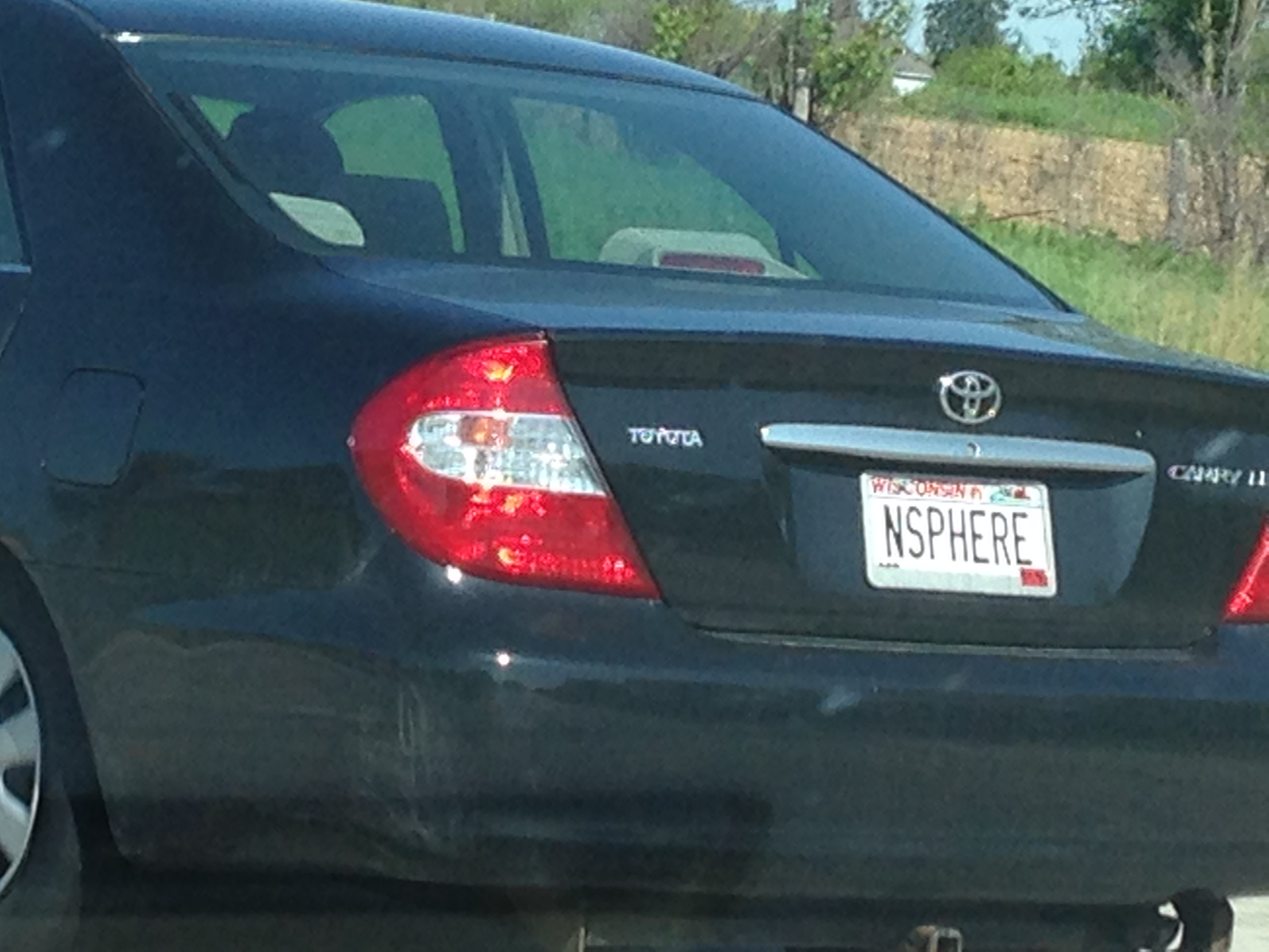 I saw the above plate indicating the Noosphere driving from Milwaukee to Madison and had to take a picture :-). I would love to find the owner.